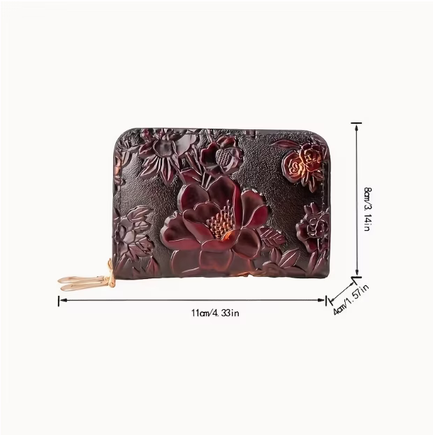 A beautiful compact teal purse that will fit any size of handbag. The purse has gold double zippers, gorgeous colour, a tri-fold coin purse, and a card holding section.